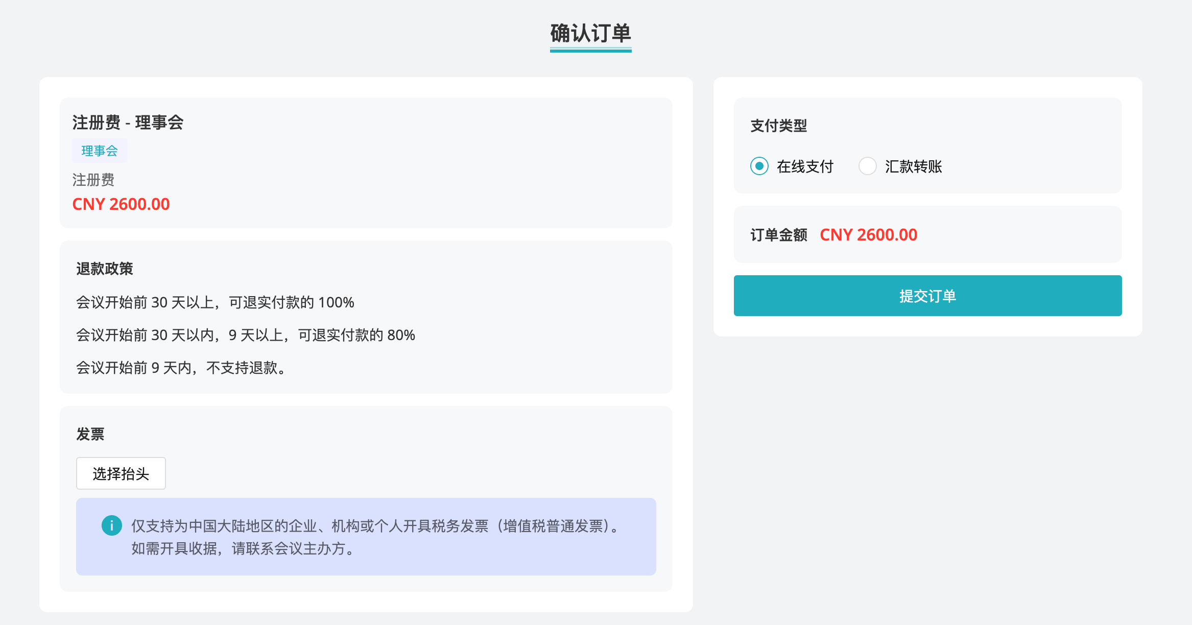 针对注册费缴纳后,不能如期参加论坛的参会人员:2026年3月10日(含3月10日当天)前可申请全额退费,2026年3月11日至2026年3月31日(含3月31日当天)期间退80%,逾期不予退费。